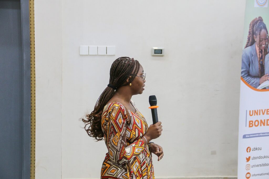 Mme COULIBALY Mame Sagnan, Cheffe de service en charge de la Promotion du Genre à la DOUVAG, a salué la mobilisation de la communauté universitaire et encouragé les participants à devenir des acteurs engagés du changement.